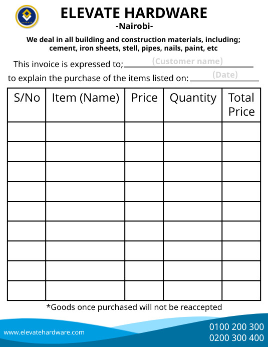 - hardware store invoice flyer