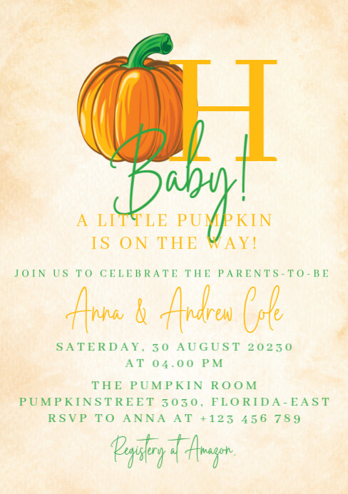 pumpkin parents to be shower invitation